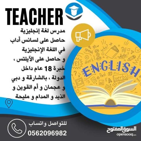مدرس لغة انجليزية لجميع المراحل وطلاب الجامعة ودارسي الآيلتس والتوفل