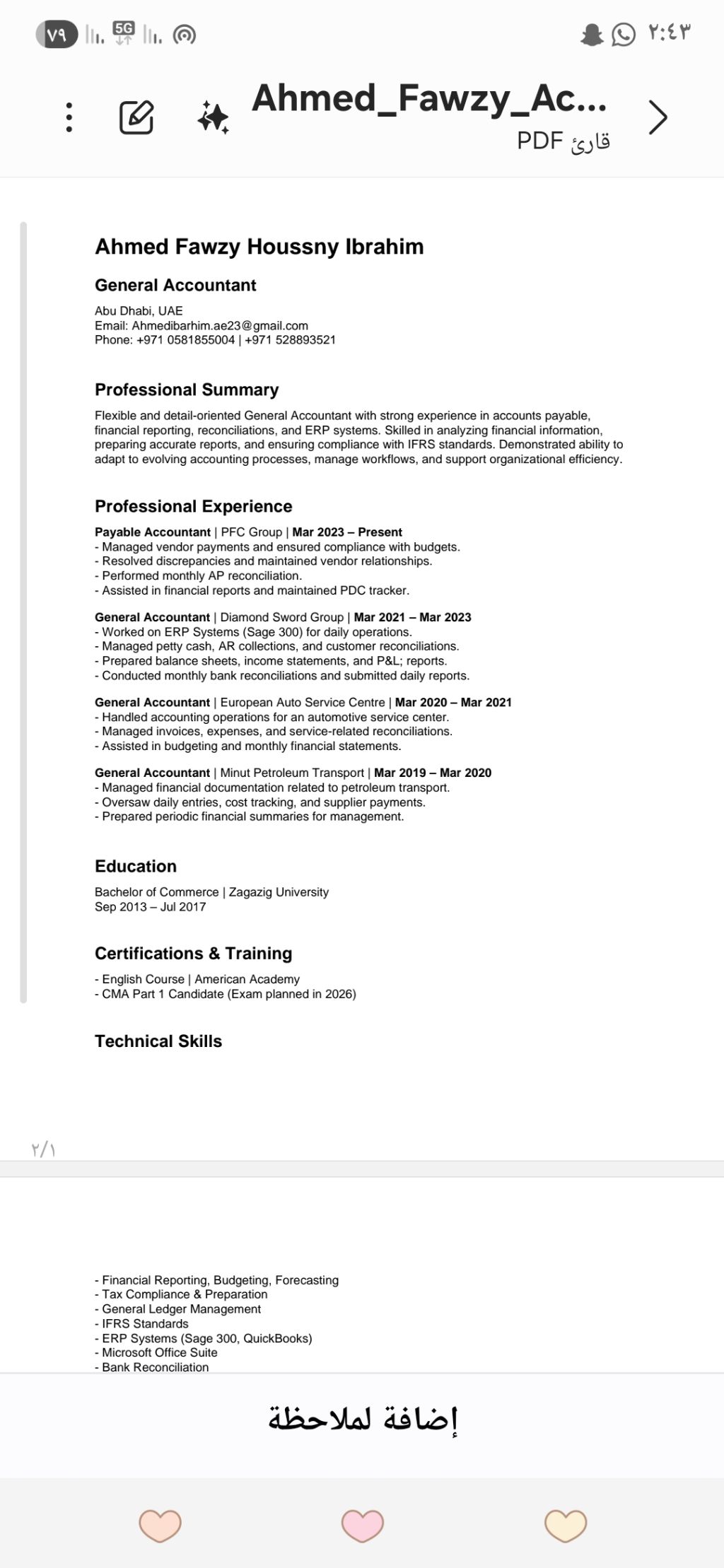 Accountant with 6 years of experience Own visa and driving license Working towards CMA certificate Looking for suitable work inside Abu Dhabi Salary 7000 Available for part time work