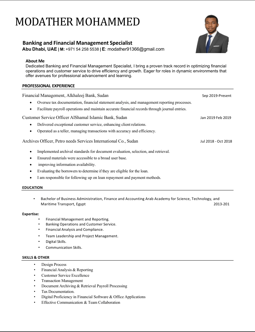 محاسب سوداني بخبرة في البنوك والإدارة المالية - متواجد في أبوظبي وجاهز للعمل فورا
