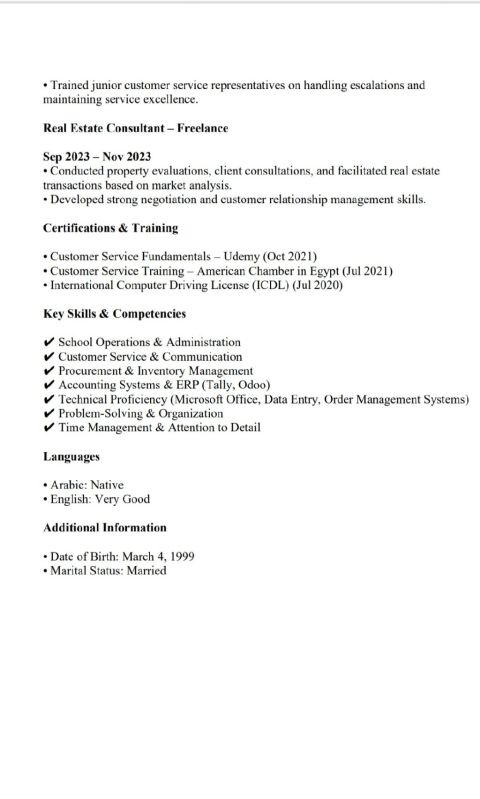 Hello everyone, I am Mahmoud Elorabi, a specialist in Operations, Procurement, and Logistics with handson experience supporting school operations and corporate environments in Abu Dhabi. Good working With Tally and Odoo ERP. Very using computer Excel Very good English and using Soical media perfect on customer service and Very good communication skills (Canceld Visa) ill make new one in 1 week