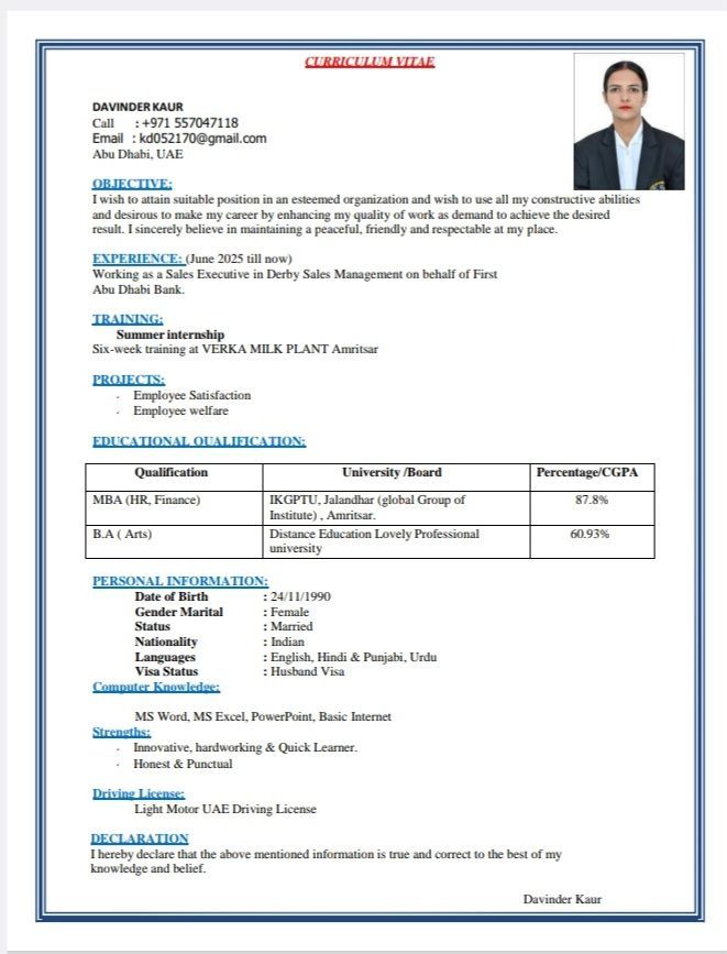 I am MBA holder in spouse visa. Looking for Admin, Finance, HR assistant job. Can join immediately in Abu Dhabi