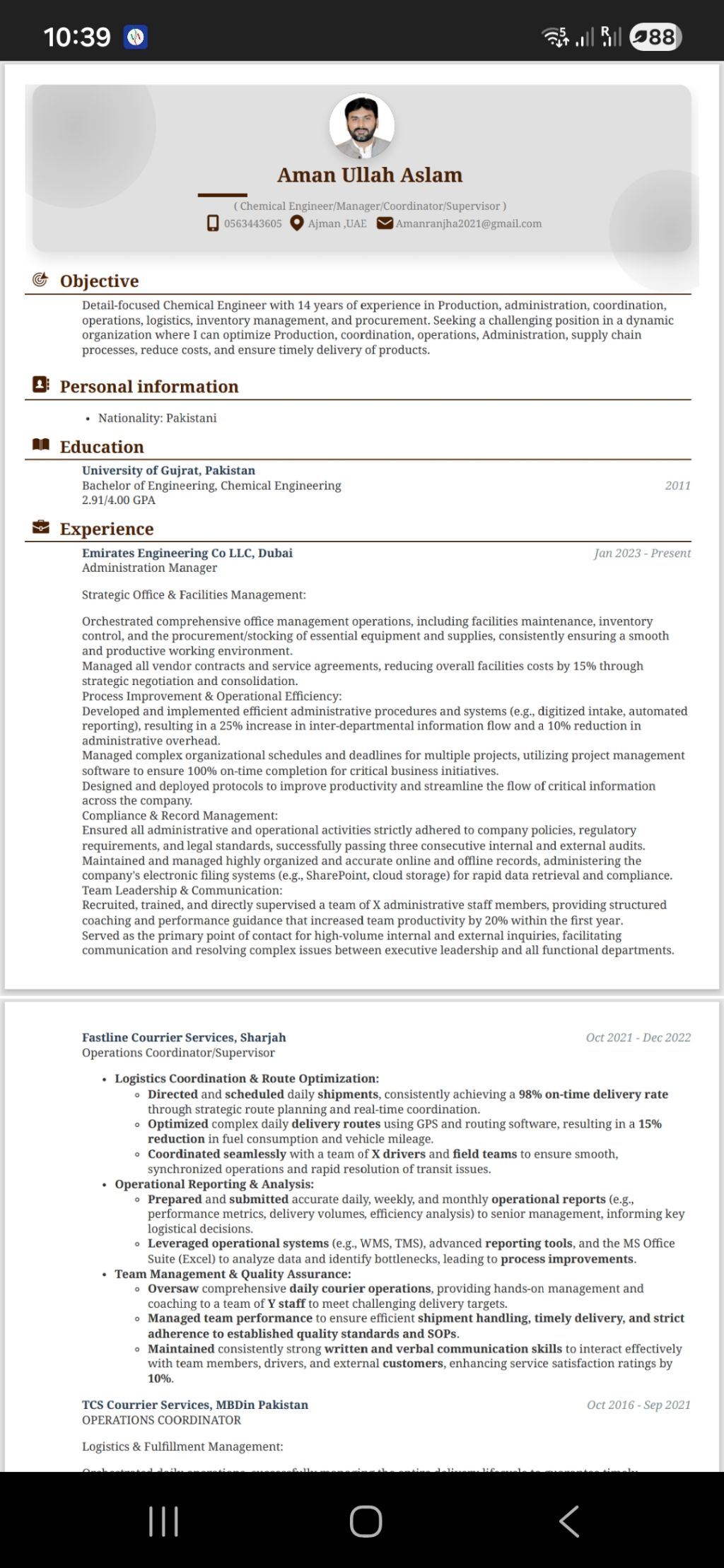 Detail - focused Chemical Engineer with 14 years of experience in Production, administration, coordination, operations, logistics, inventory management, and procurement. Seeking a challenging position in a dynamic organization where I can optimize Production, coordination, operations, Administration, supply chain processes, reduce costs, and ensure timely delivery of products