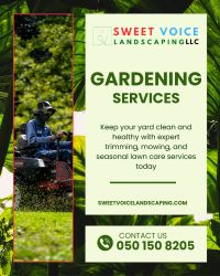 Monthly Garden Maintenance Services in Abu Dhabi Keep your garden fresh, green, and healthy all year long with Sweet Voice Landscaping LLC your trusted garden care experts in Abu Dhabi. Our monthly garden maintenance packages ensure your villa garden stays beautiful without any hassle. We take care of everything on a regular schedule so you enjoy a clean, well - maintained outdoor space every day. Our