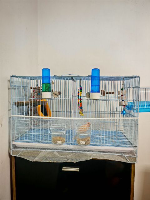 ذكر وأنثى كناري، مع قفص كبير وكل الأكسسوارات وأكل وفتمينات المكان أبوظبي السعر 350 نهائي
