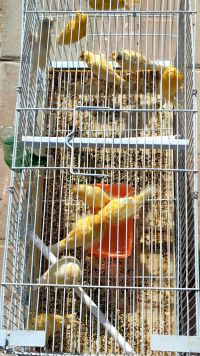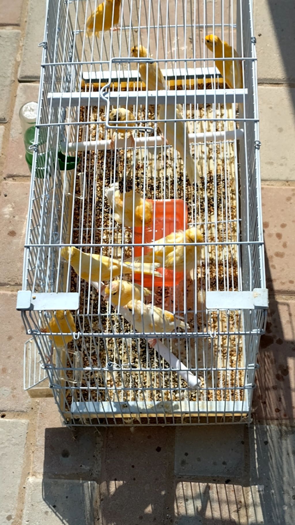 طيور كناري للبيع جميعا مع القفص 11 حبة سعر الحبة 75 درهم سعر الكل 1050 درهم اذا تريد حبة سعر الحبة 100 للذكر و75 للأنثى يوجد جوز كناري مع العش والبيض والقفص سعر 300 درهم يوجد ذكر كوكتيل مغرد جاهز السعر 150 مع القفص يوجد قفص هدية في حال تم شراء الكل مرة واحدة