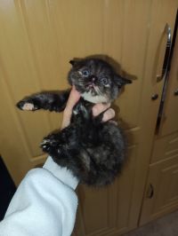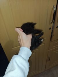 قطة أنثى عمر شهر لون أبيض وبني فاتح للتبني برسوم 500 درهم