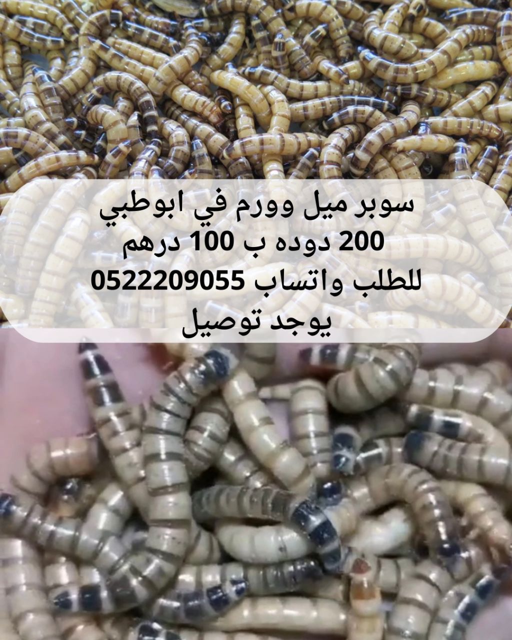متوفر لدينا في أبوظبي دودة سوبر ميل وورم 200 دودة ب 100 درهم ويوجد لدينا توصيل