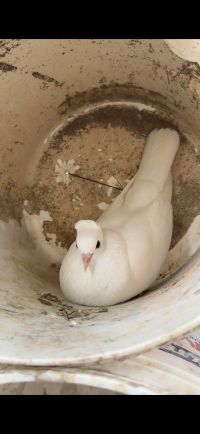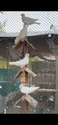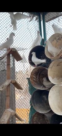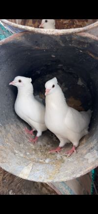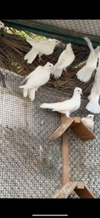 For sale Persian pigeons. Flip - up. Snow white color. Pairs and products. Two layers. Excellent health and size. Number 37. Price AED150 per pigeon. Wholesale only. Location Al Shahama, Abu Dhabi. Contact and WhatsApp only
