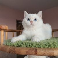 Meet this charming British shorthair cat with striking eyes This friendly feline is ready to find a forever home. Well - groomed and playful, this cat is perfect for families or individuals looking for a loving companion. Don't miss out on the chance to adopt this beauty