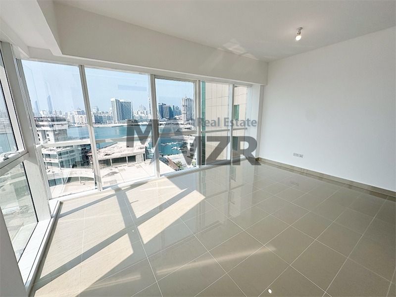 Apartment for sale in Al Durrah Tower, Marina Square, Al Reem Island, featuring 3 spacious bedrooms with en - suite bathrooms and built - in wardrobes, bright living and dining area with floor - to - ceiling windows, closed modern kitchen with ample storage, dedicated study room, stunning panoramic sea and city skyline views, central air conditioning, 24/ 7 security services, priced at AED3603000