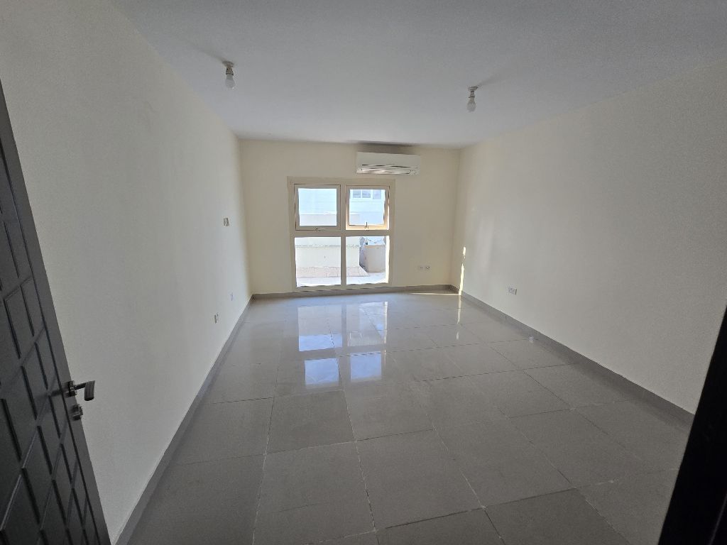 For rent in Shakhbout City Two rooms, balcony, 3 bathrooms, including water, electricity, maintenance, and annual parking. rent is 70. Contact