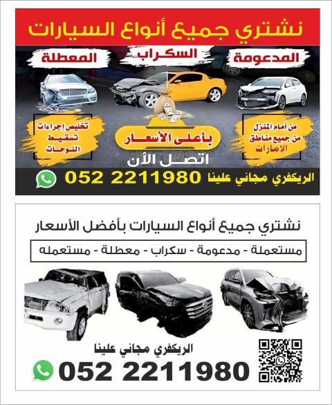 مطلوب سيارات سكراب منتهية الملكية / فيها أعطال / مدعومة / ضمن الامارات فقط. للتواصل