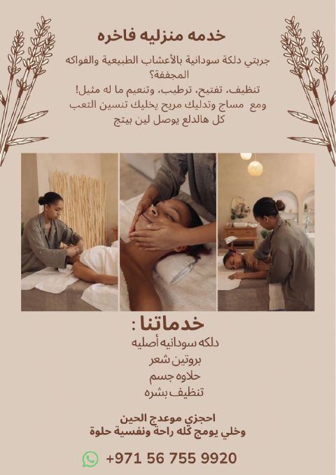 خدمة منازل شغل بروتين الشعر ودلكة سودانية وشيل جسم ونظافة البشرة