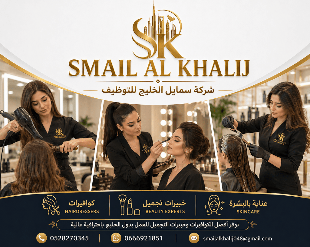 مكتب سمايل الخليج للاستقدام يوفر لكم من المغرب كوافيرات / خبيرات حمام مغربي / خبيرات مساج / خبيرات تجميل منكير وبدكير وجميع عاملات الصالونات والمراكز بكفاءة عالية لطلب يرجى التوصل معنا عبر أرقامنا