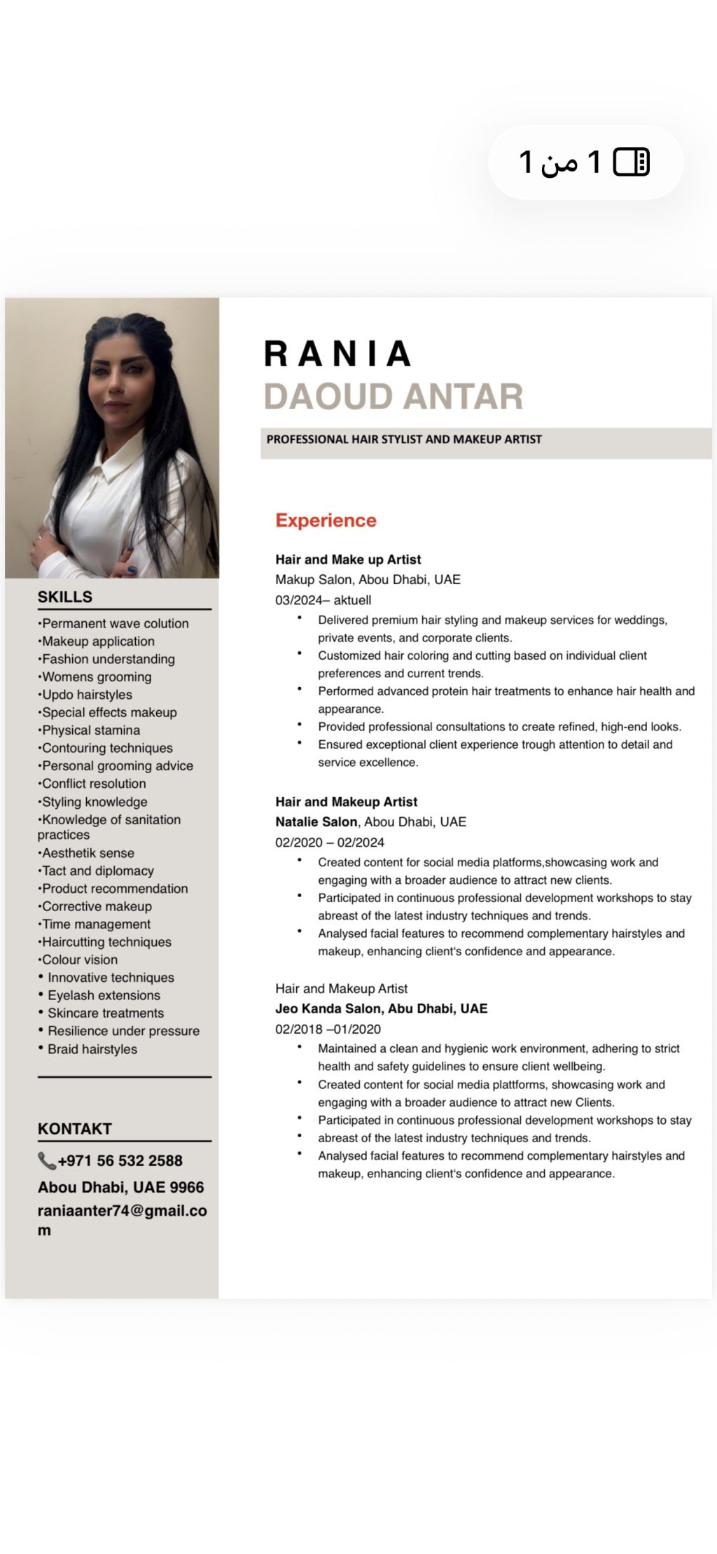 كوافيرة جاهزة للعمل خبرة في التسريحات المكياج، والعناية بالشعر ملتزمة، شغل نظيف