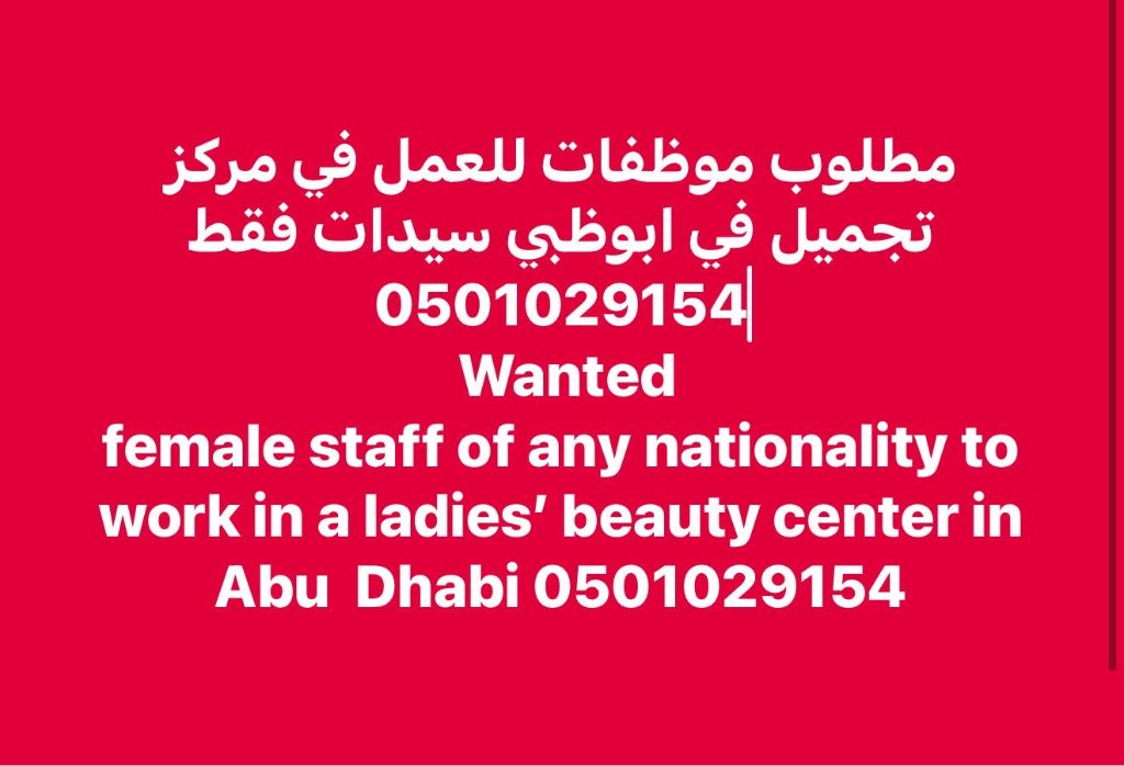 مطلوب موظفات للعمل في مركز تجميل سيدات فقط مطلوب موظفات محترفات للعمل في صالون نسائي في أبوظبي شارع المرور خلف المشرف مول نبحث عن فنيات ذو خبرة في المجالات التالية 1 حمام مغربي 2 مساج (Heat Spa) 3 علاج البشرة (هيدروفيشل - دير مابين - ميكروبليندينغ - توريد الشفاه) 4 مختصات شعر وصبغات (5 فنيات اظافر - خبرة في جيل بوليش جيل أكستنشن جيل طبيعي فرنش جيل الموقع أبوظبي خلف المشرف مول للتواصل واتساب فقط للجادات