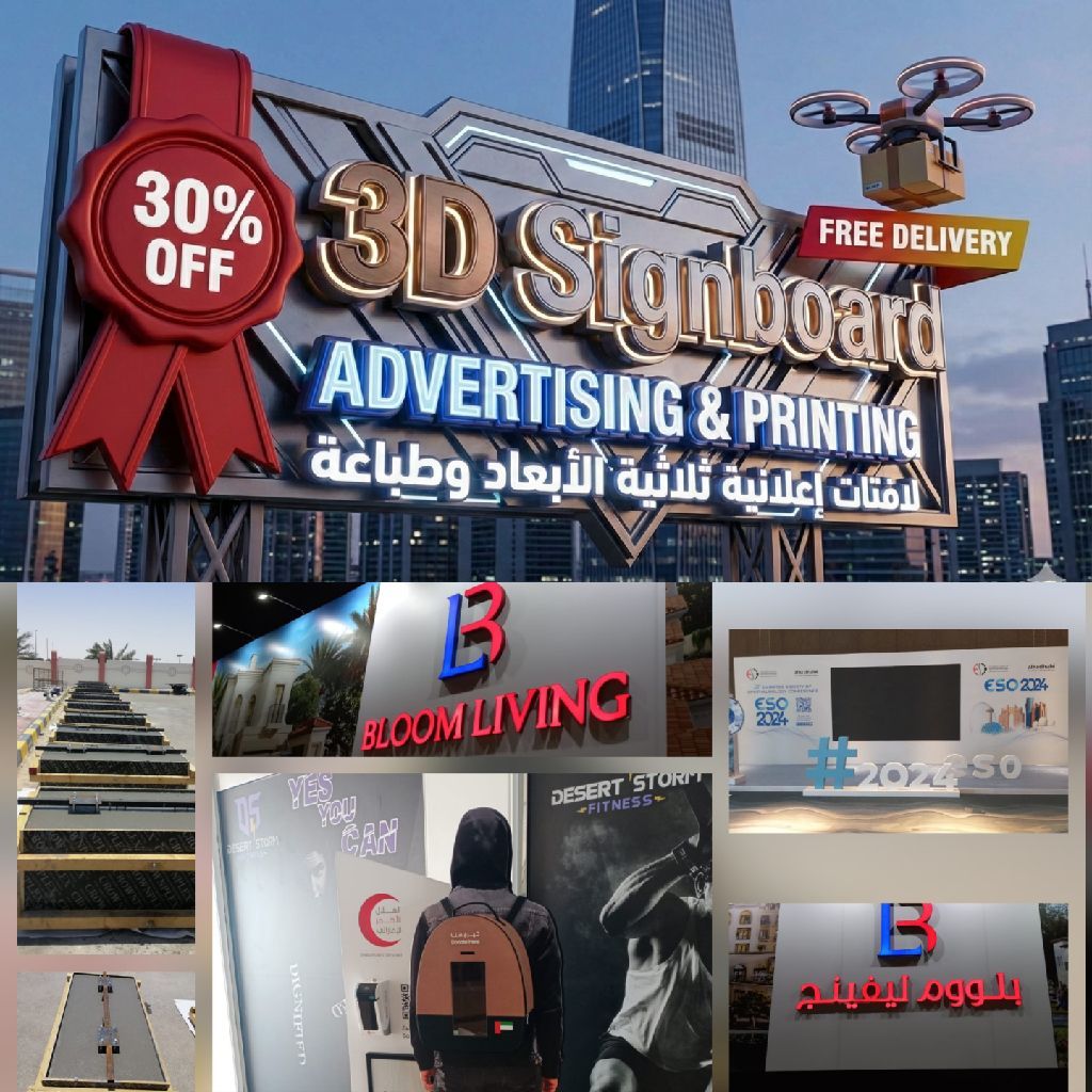 تميز مع حلولنا الاعلانية من خلال اللوحات الاعلانية وتصاميم 3D أسعار منافسة، جودة عالية، وتوصيل مجاني