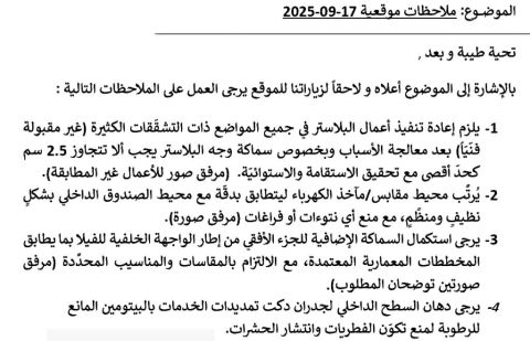 لملاك الفلل، بمبلغ بسيط تريح راسك وتطلب زيارة هندسية نفحص فيها مخططاتك والأعمال المنفذة فنيا وماليا وزمنيا، لنكشف أي نزيف في الأعمال (من الخرسانة والكهرباء والصحية الى التشطيبات والتكييف والألومينيوم الخ) والفواتير وعروض الأسعار قبل أن تصبح خسارة دائمة تستلم تقريرا مفصلا بكل دقة ووضوح يوضح المخاطر، وفرص التوفير، وملاحظات وخطوات اصلاح ورفع جودة العمل، لتطمئن وتتفادى أي خسائر