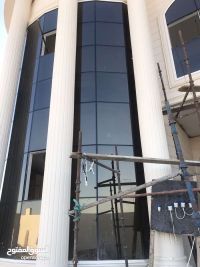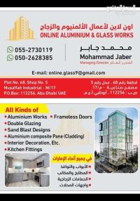 We are an online company for aluminum, glass, and kitchen works, office facade installation, glass showers, building facade washing, silicone and rubber replacement, and door, window, and bathroom mirror installation in Abu Dhabi
