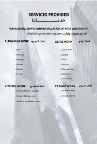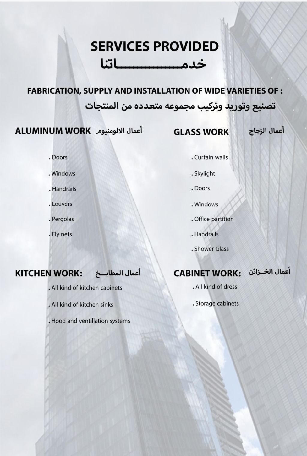 A factory specializing in aluminum, kitchens, and glasswork in Abu Dhabi, with extensive market experience, offering competitive prices and high quality