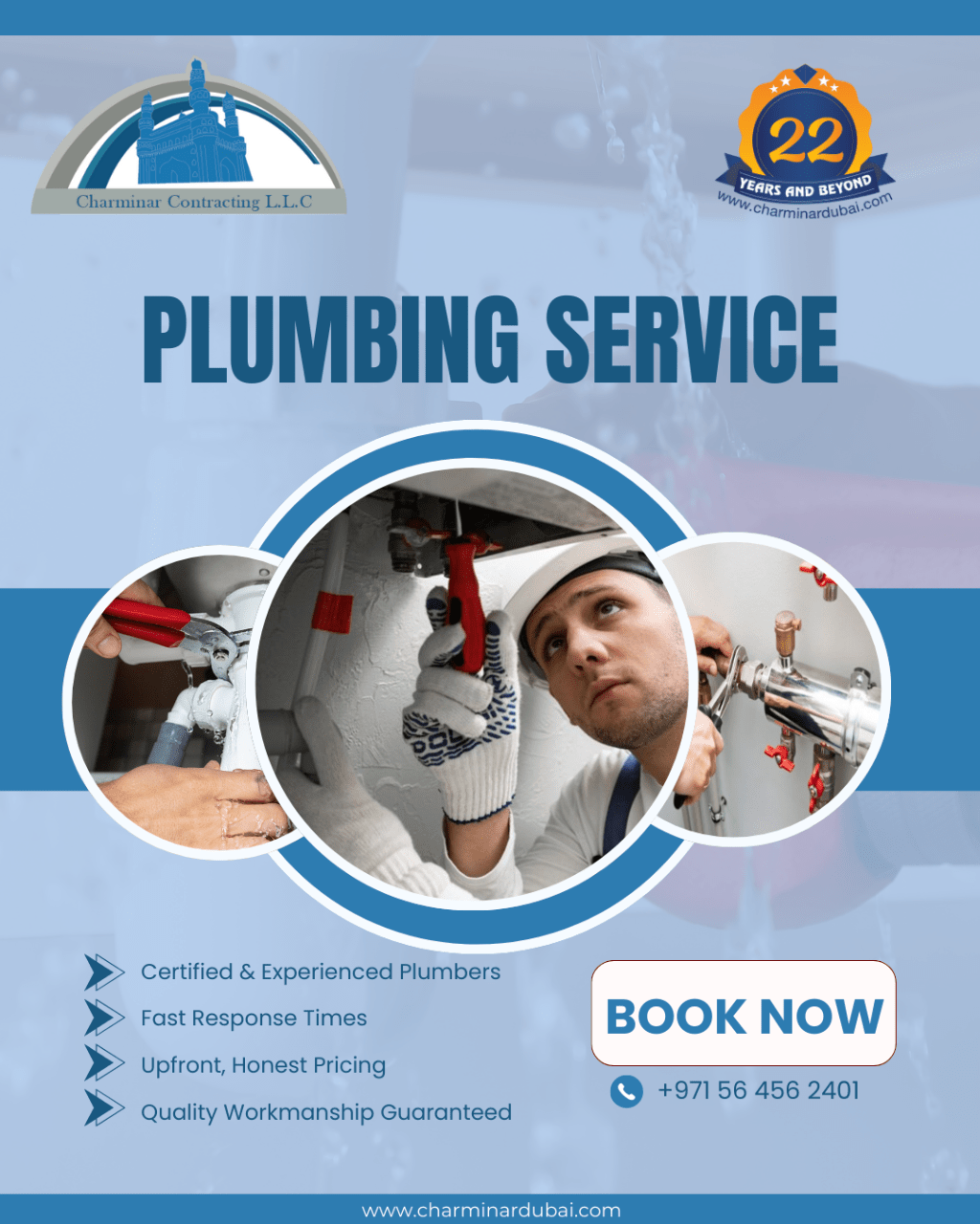 Protect Your Property from Plumbing Problems Leaking pipes, clogged drains, or low water pressure can turn into costly damage if ignored. Our professional plumbing service keeps your home or commercial space running smoothly with fast, reliable solutions you can trust. Why Choose Us Certified and experienced plumbers Quick response across Dubai Transparent and honest pricing Advanced tools and quality