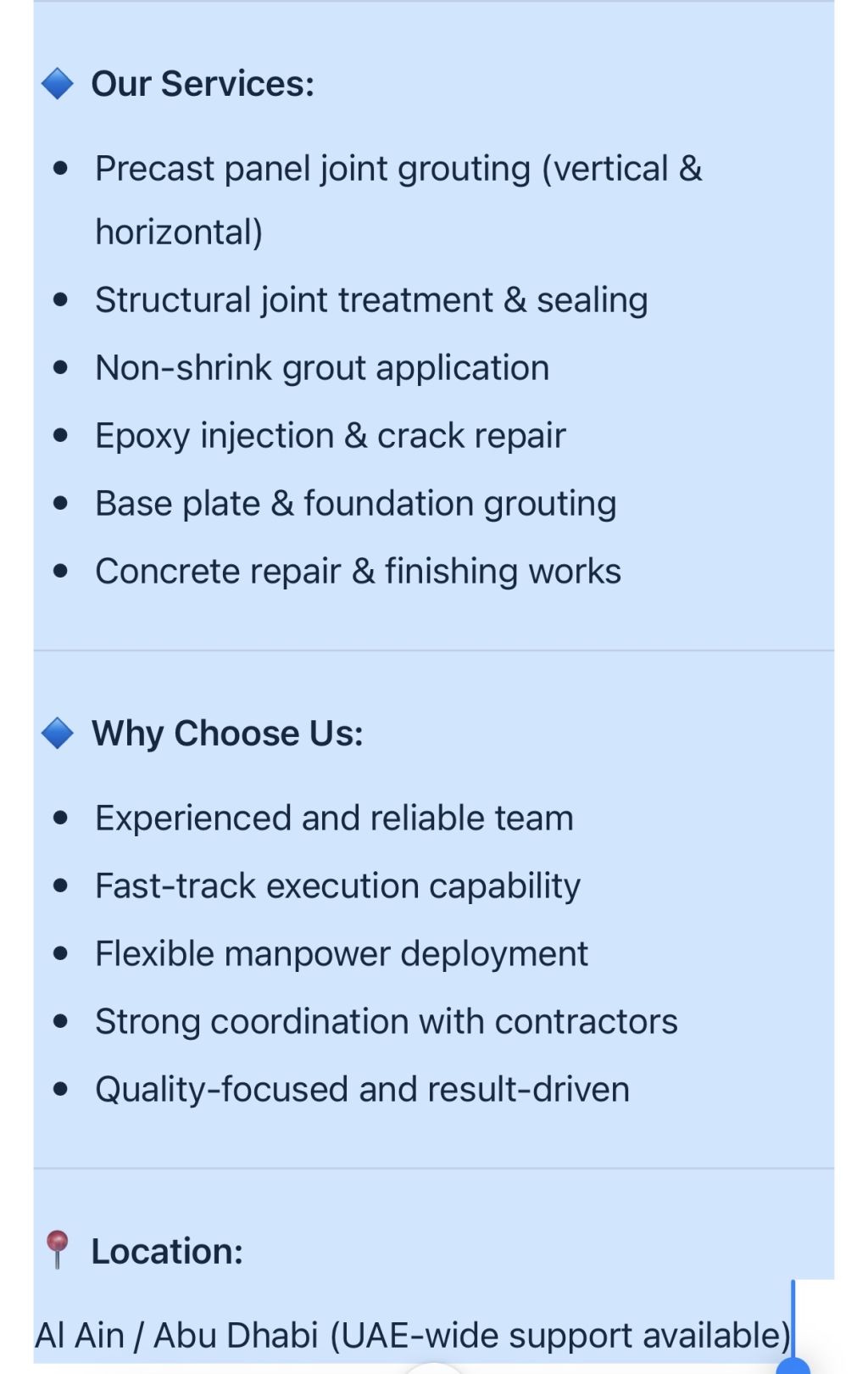 PRECAST GROUTING WORKS - Specialized SUBCONTRACTOR Available (Al Ain/ Abu Dhabi)