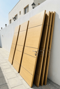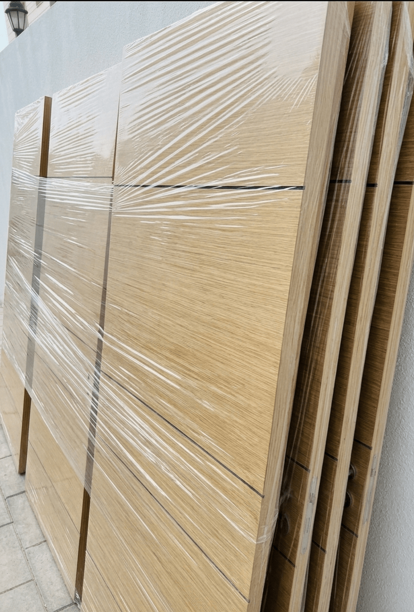 For sale Modern Interior Wooden Door Leafs (Premium Stock) A quantity of modern interior door leafs is available for sale. These are stored stock in excellent condition, with most still in their original factory wrapping. A perfect opportunity for building owners, villas, or home renovation projects. Specifications Type Semi - solid core doors with Natural Oak Veneer finish. Design Elegant modern