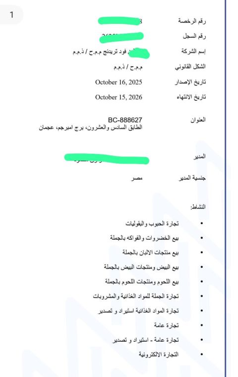 مطلوب. 30000 ألف. على 6 شهور عندى. شركة. جديدة. تجارة. مواد غذائية. وتجارة عامة عجمان وفاتح لها ضريبة. وحساب بنكي. ولها مكتب ومعها سيارتين بس. بيترتبو بالكراج. التمويل مع ضمانات متوفرة. ت اللي مهتم. يتواصل ونتفق. على الاسترداد والضمانات. الست. شهور. والتسديد من بداية الشهر الثالث اللي له رغبة. يقول أية ضماناتة