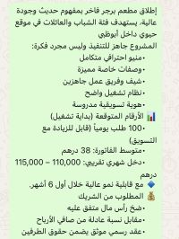 لدي مطعم بي أبوظبي نريد بدأ عمل جديد ابحث عن شريك