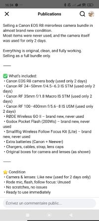 Canon EOS R8 Full Camera Bundle - Like New - Original Selling a Canon EOS R8 mirrorless camera bundle in almost brand new condition. Most items were never used, and the camera itself was used for only 2 days. Everything is original, clean, and fully working. Selling as a full bundle only