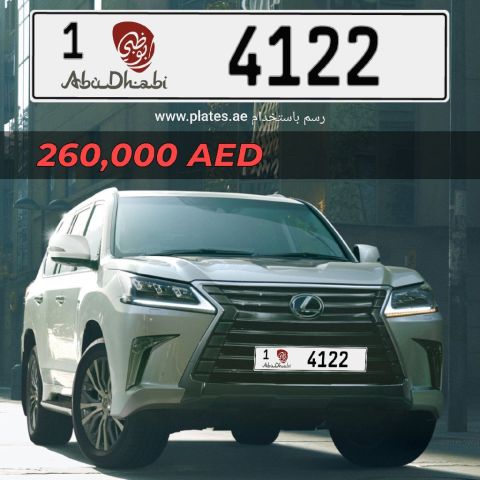 للبيع رقم رباعي مميز للعاصمة أبوظبي 4122 الكود الذهبي كود 1