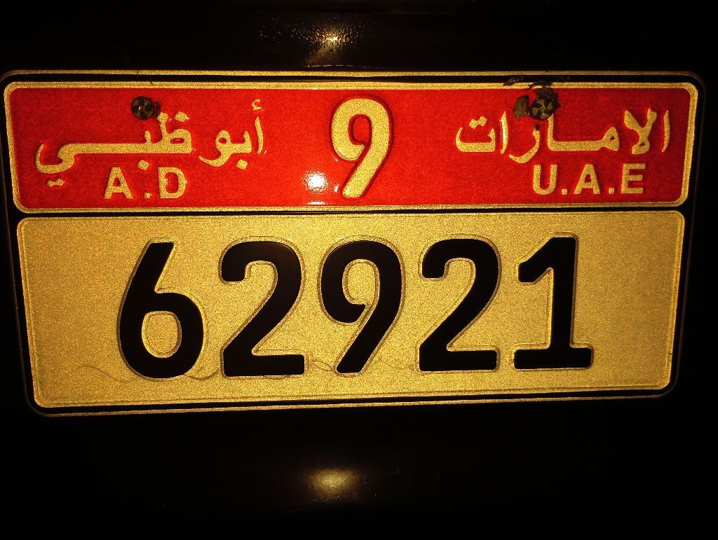 Abu Dhabi license plate number 62921, category 9, for sale at AED45000