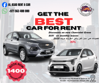 30% discounts on monthly, daily, and weekly rentals - Economy and 4x4 cars - SUV