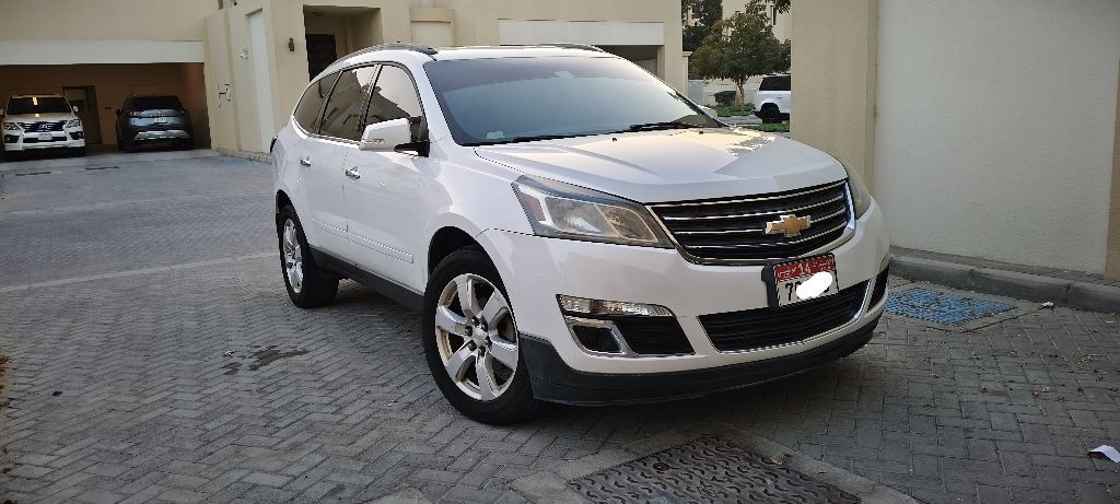 للبيع: شفروليه ترافيرس LT موديل 2016، مواصفات خليجية، رقم واحد. المميزات تشمل: تشغيل عن بعد، دخول بدون مفتاح، مثبت سرعة، حساسات أمامية وخلفية، شاشة وكالة كبيرة، رنقات مقاس 20 بوصة، رادار خلفي، كراسي كهربائية، إضاءة LED، مكيف خلفي منفصل. سيارة دفع رباعي عائلية بـ 8 مقاعد، صبغ وكالة، فرش وكالة، نظام مثبت سرعة. المالك الثاني، صيانة كاملة، ملكية سنك كاملة. السعر: 17,500 درهم.