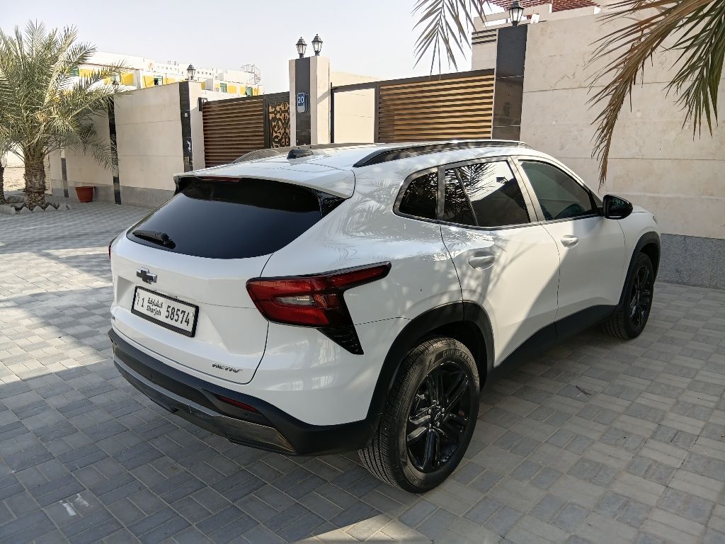 Chevrolet Trax LTZ for sale in Abu Dhabi, Mohammed Bin Zayed City area. Model year 2024, mileage 30,000 km, very clean. The car has new wheels, electric mirrors, sensors, fingerprint start, fingerprint doors. Asking price: 47,000 AED.