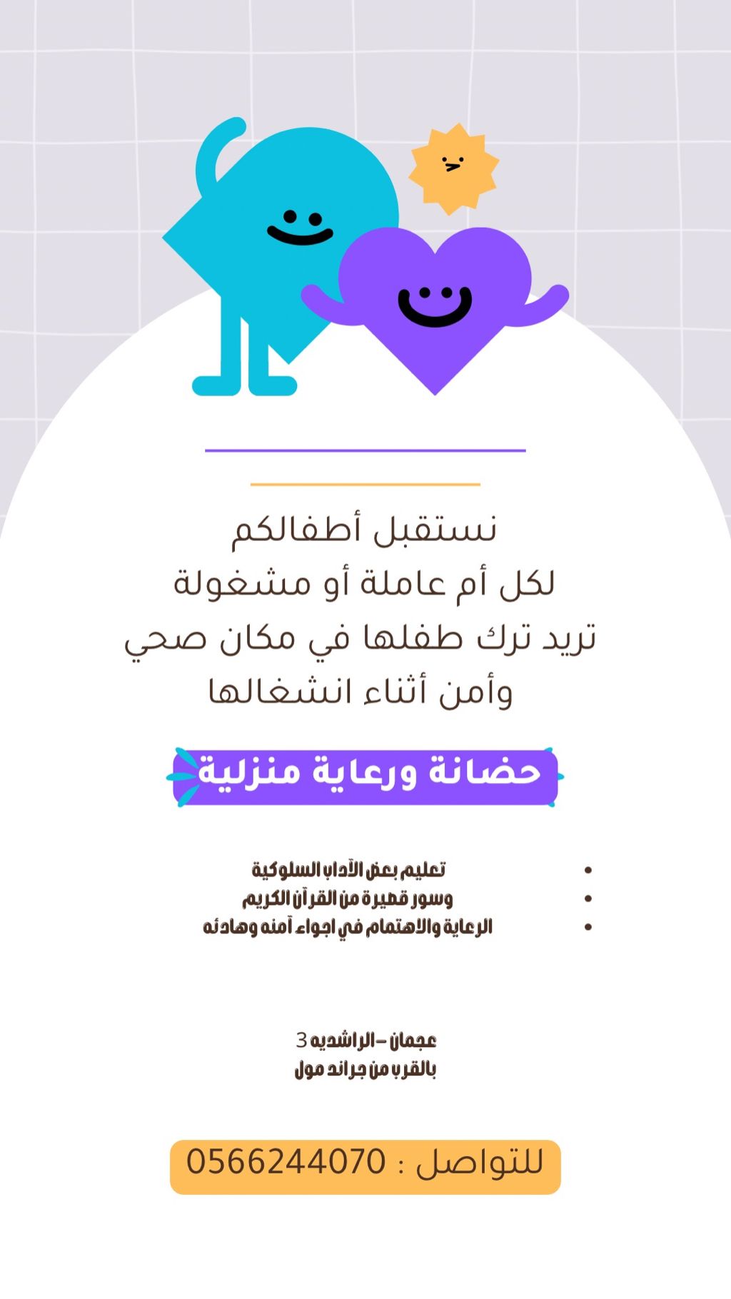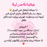 ضيافة اطفال في المنزل متوفرة رعاية اطفال داخل المنزل في أجواء آمنة ونظيفة، اهتمام وراحة تامة لكل طفل حضانة منزلية