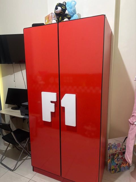سرير اطفال عدد 2 على شكل سيارة مع خزانه شبه جديدة، استعمال خفيف، سعر 1200 درهم