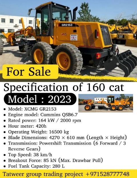 Grader for sale Model year 2023, model type 2153, 0 meter, Imported from China, equal to 160 caterpillar specification, price 210000 Mussafah 17 available