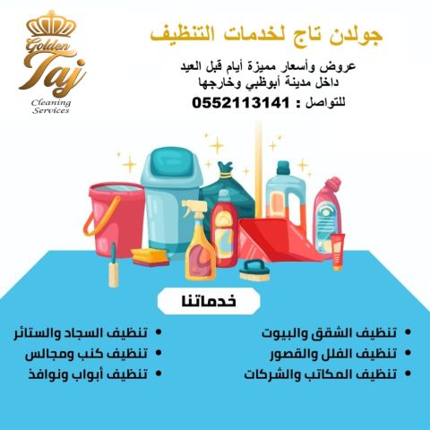 شركة جولدن تاج لخدمات التنظيف نقدم عروضنا لأيام قبل العيد لخدمات تنظيف المنازل بأسعار مغرية وجودة العمل للتواصل