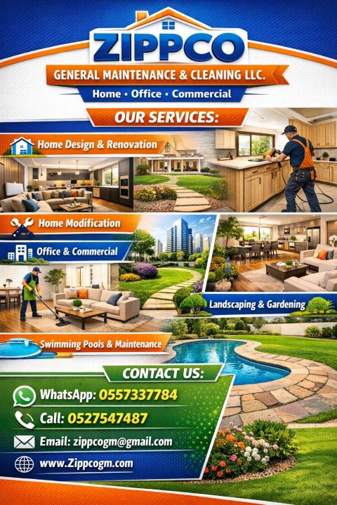نقدم لكم خدماتنا المتميزة خدمات التنظيف تنظيف المنازل والفلل والمكاتب تنظيف شامل وعميق لضمان بيئة صحية ونظيفة أعمال الصيانة والخدمات اليدوية (Handyman) صيانة عامة للمنازل والمكاتب أعمال كهرباء، سباكة، نجارة، وأي أعمال صيانة أخرى للتواصل واتساب اتصال البريد الألكتروني الموقع