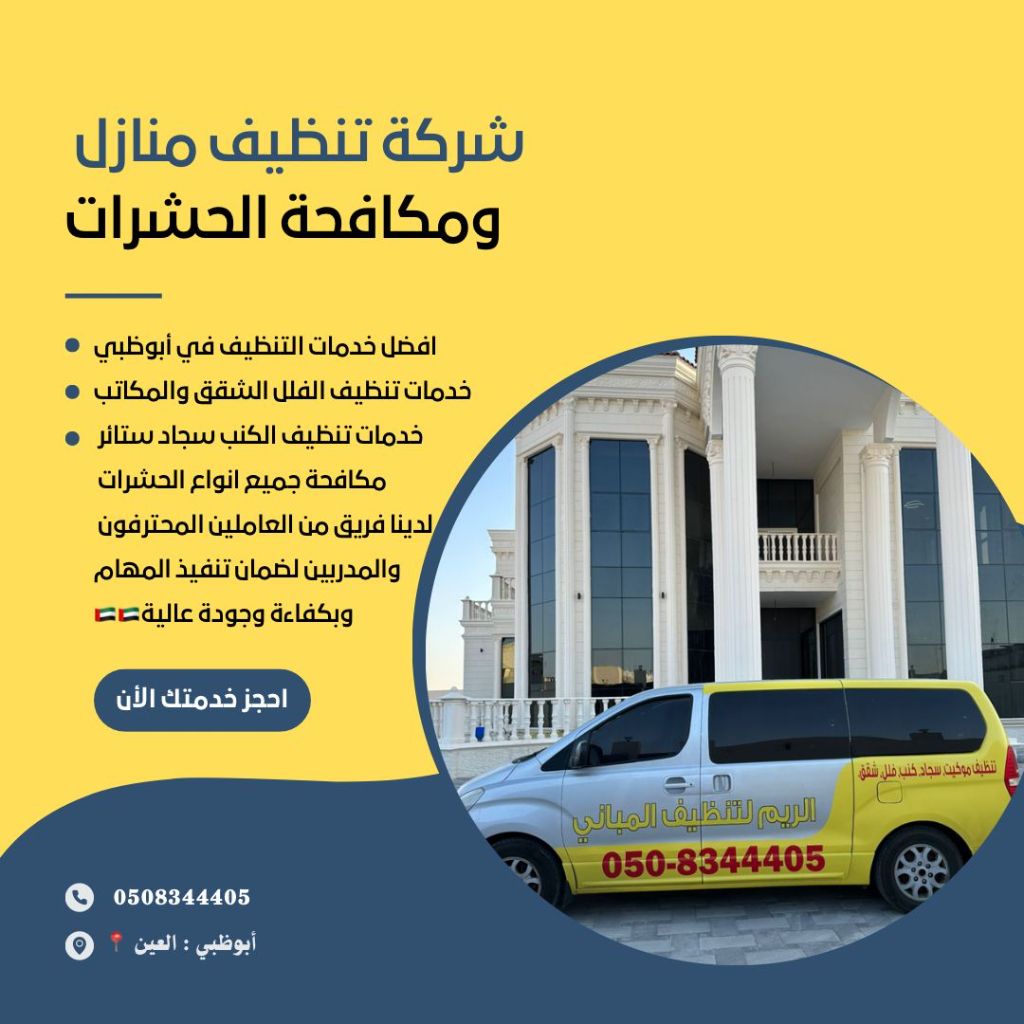 شركة تنظيف المنازل ومكافحة الحشرات أفضل خدمات التنظيف في أبوظبي خدمات تنظيف الفلل وشقق ومكاتب خدمات تنظيف كنب سجاد ستائر مكافحة جميع أنواع الحشرات لدينا فريق من العاملين المحترفين والمدربين لضمان تنفيذ المهام وبكفاة وجودة عالية التواصل