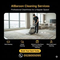Al Baroon Cleaning Services in Abu Dhabi We offer you peace of mind with a cleanliness that befits your space Professional villa and apartment cleaning Kitchen cleaning and sanitizing Sofa and upholstery cleaning Carpet cleaning with the latest equipment We use safe and environmentally friendly materials Contact us Al Baroon. Because cleanliness is the hallma