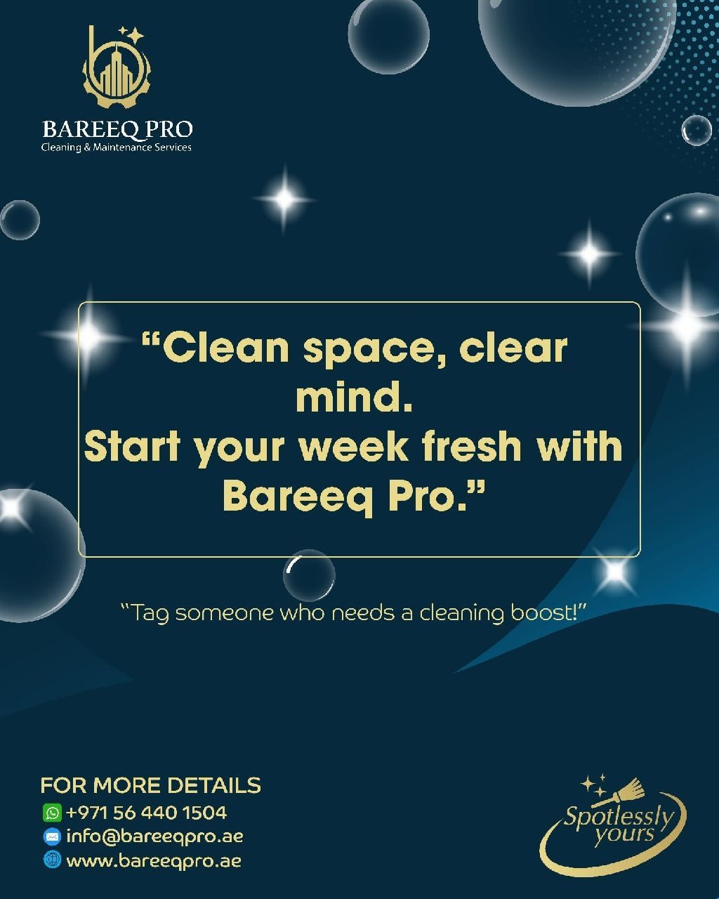At BAREEQ PRO, we specialize in transforming residential, commercial, and Industrial spaces through high - quality cleaning services tailored to your needs across Abu Dhabi