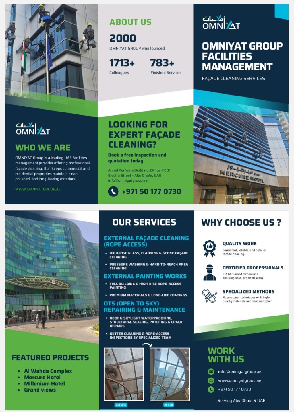 We would like to express our keen interest in establishing a working relationship with your organization as a trusted contractor in the field of Integrated Facilities Management (IFM) services. Core Services External Cleaning with Rope Access General Maintenance (MEP & Civil Works) HVAC & Air Conditioning Services (chiller Installation & maintenance) Preventive & Corrective Maintenance