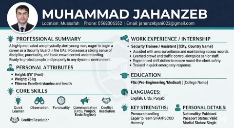 I am currently in UAE on a visit visa. I have previous experience in watchman, warehouse, and factory labour work. I am a former ID holder with valid prior experience. Ready to join immediately for any labour, security, or warehouse - related tasks