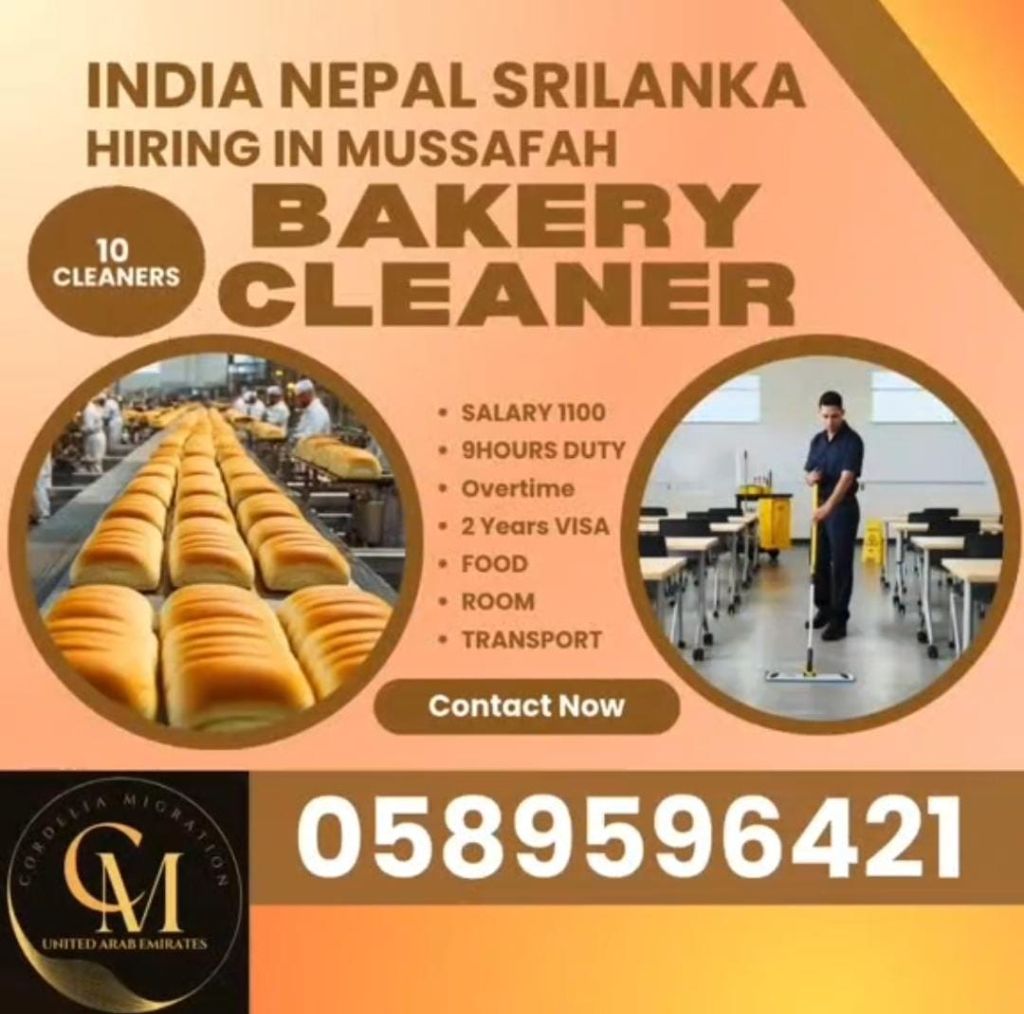 Male Cleaners 1100 salary + Visa + food + accommodation. Total 10 required. Job location Mussafah Abu Dhabi