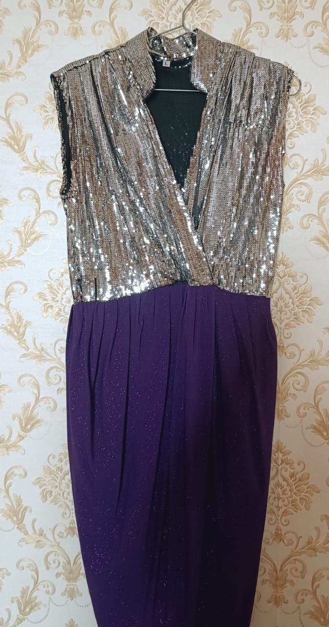 فستان استريج ترتر قصير مناسب للحفلات استعمال مرة وبحالة ممتازة اللون بنفسجي بلمعة مع ترتر فضي المقاس ميد يوم السعر 100 درهم للتواصل
