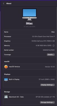 Apple iMac 27 inch (2013 latest) Quad - Core Intel Core i7, Memory 8GB, Graphics 4GB, Storage 1TB, 4 Memory slots Model 14.2. Used only 6 months used like new with 2 keyboards and mouse. Price AED1800 location west Baniyas Abu Dhabi