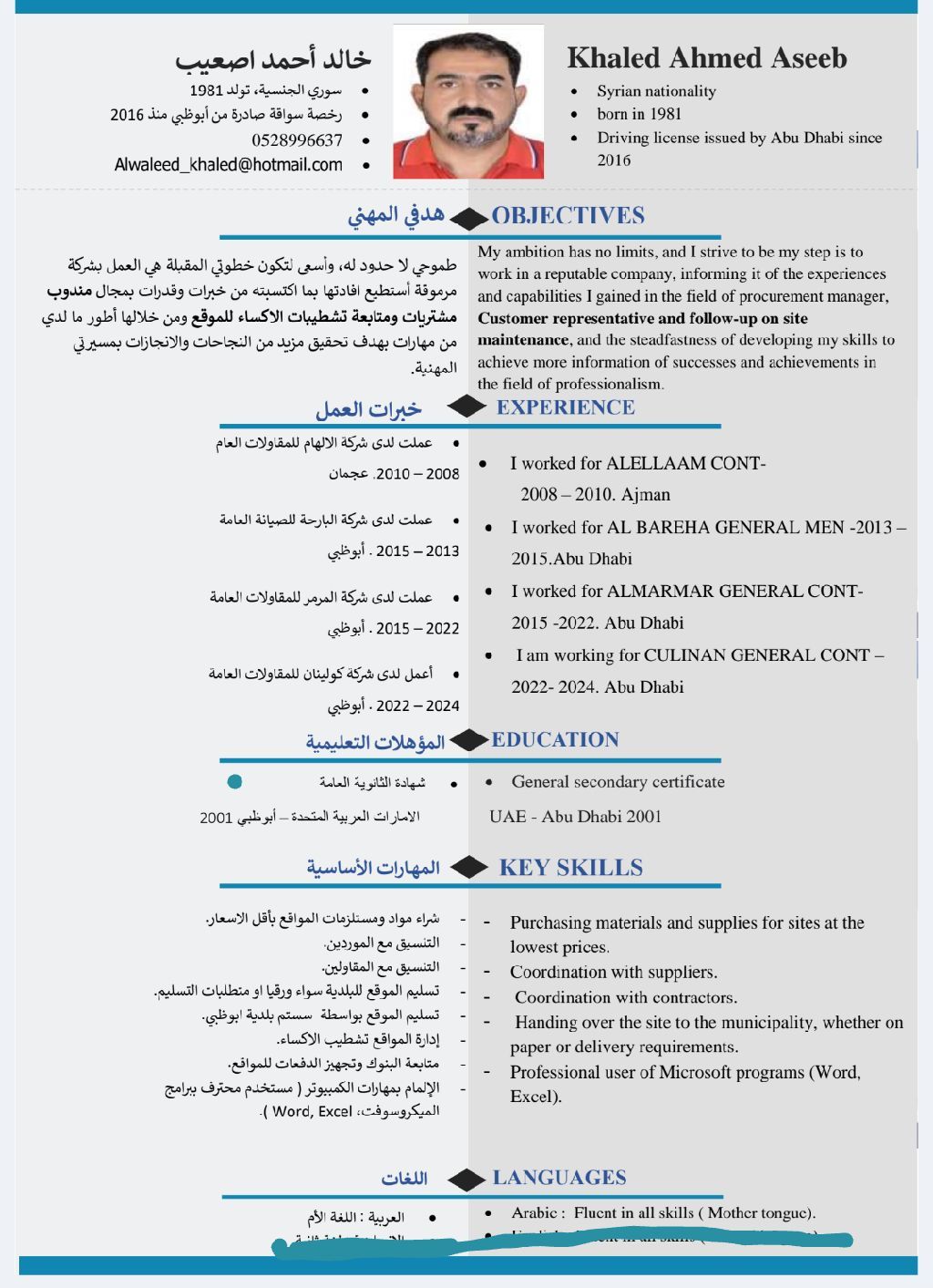 فورمان تشطيبات ومتابعة أعمال الموقع الفلل ومندوب مشتريات لشركات المقاولات العامة ومتابعة المقاولين بالمواقع والمام بالتسليمات النهائية للفلل ومتابعتها بالموقع وجاهزيتها وتسليمها داخل سستم بلدية أبوظبي خبرة داخل أبوظبي من سنة 2013 لغاية الآن وحاصل على رخصة قيادة أبوظبي واقامة قابلة للإعارة أبوظبي