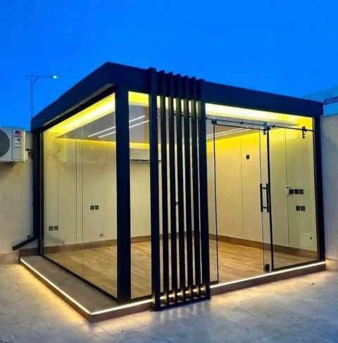 Almas Company for Aluminum and Glass Manufacturing and Supply is ready to provide our services throughout the Emirates We offer speed and precision in execution God willing. We manufacture glass Majlis (reception rooms) with thermal insulation for ceilings and aluminum enclosures and fences for main villas Sharjah Industrial 13